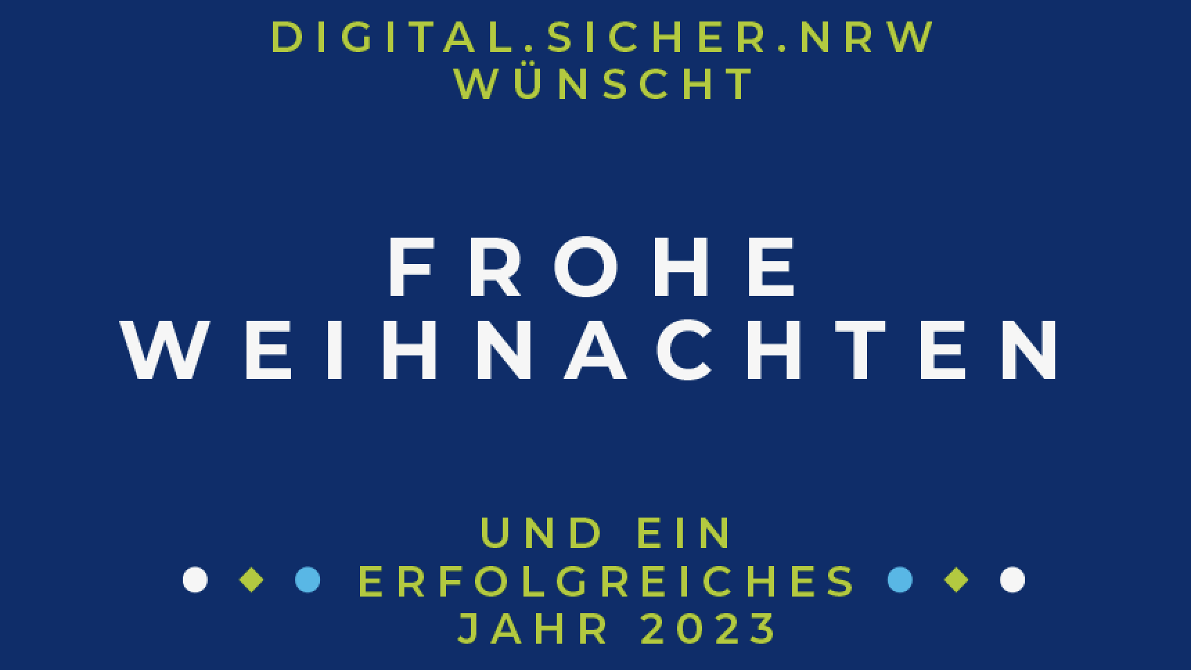 Zum Abschluss bleibt uns nur noch eines zu sagen: Das gesamte DIGITAL.SICHER.NRW-Team wünscht Ihnen eine besinnliche Weihnachtszeit und einen erfolgreichen Start in ein gesundes und glückliches Jahr 2023.