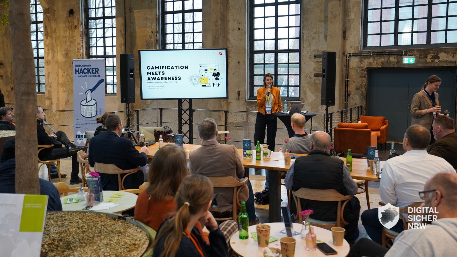 Die Agenda bot ein breites Spektrum an Vorträgen und Panels. So gab es u.a. spannende Einblicke aus dem Bereich der IT-Forensik, zum Thema Datensicherung oder der Schaffung von Awareness mithilfe von Gamification. Daneben informierten Fachvorträge über KI-basierte Cyberangriffe, Sicherheitslücken in IoT-Geräten und Notfallplanung für kleine und mittlere Unternehmen. Abschließend gab die NIS-2-Anlaufstelle NRW wichtige Auskunft zur Umsetzung der NIS-2-Richtlinie im Unternehmen und die Zentral- und Ansprechstelle Cybercrime (ZAC NRW) referierte zum Umgang mit Cybercrime-Fällen wie Ransomware-Angriffen.